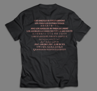 “Los Angeles is For Everyone” appears in the 13 most representative languages spoken across Los Angeles: a tribute to the city’s many voices.